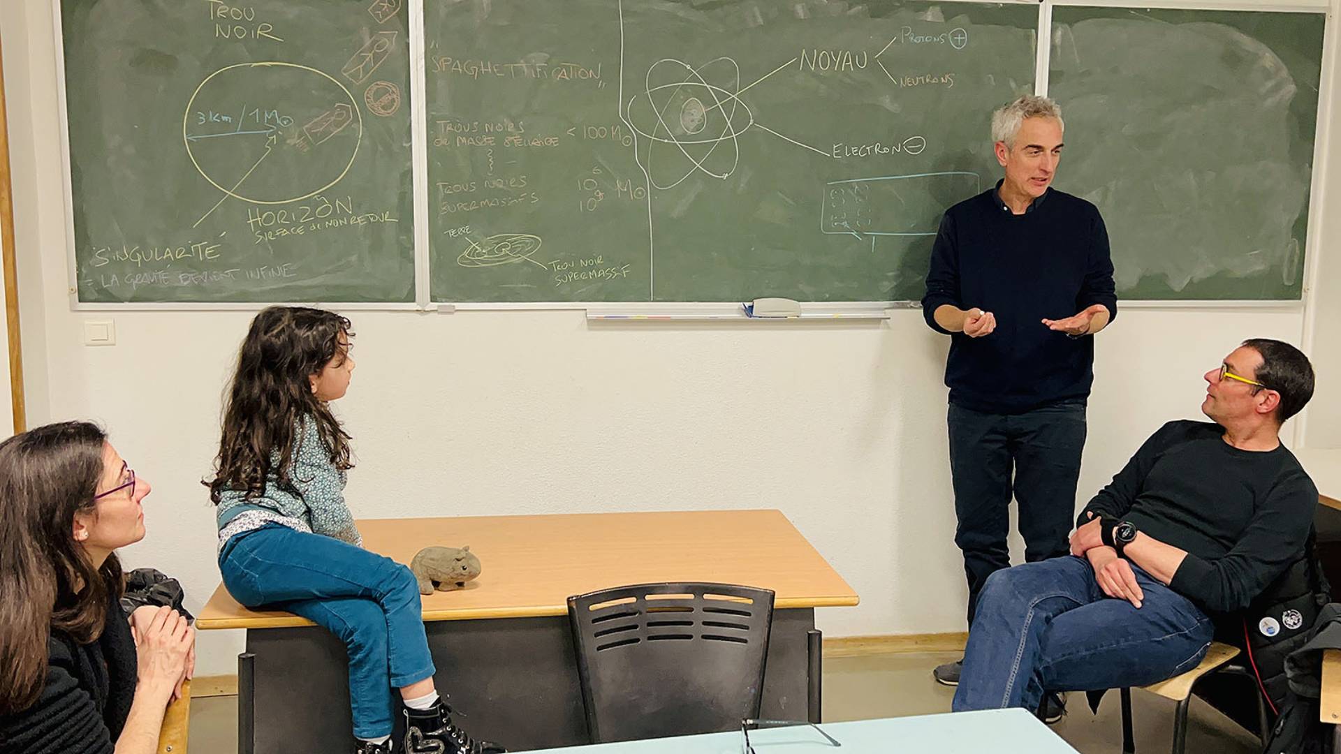 Matteo Barsuglia, Giulia Vannoni (du Centre Cosmos, Sciences et Sociétés) et le Docteur Alexis Mosca (de l’hôpital Robert Debré). Crédit photo : ©Association Robert Debré.